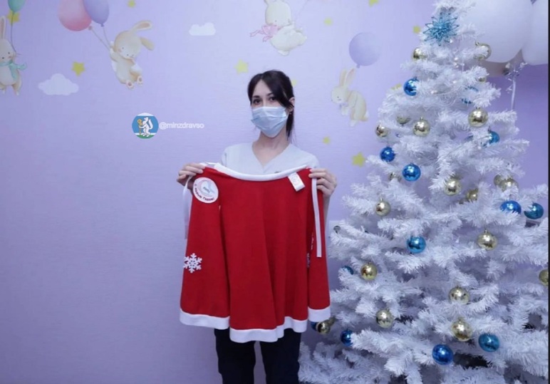 Медработники наряжают мальчишек и девчонок, которые направляются домой вместе с родителями. В первые дни своих малышей в новогодних нарядах получат несколько десятков семей.