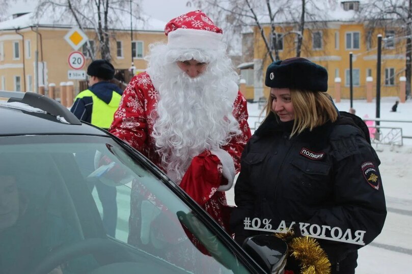В Кушве, Невьянске, Артях, Реже и Сысерти автомобилистам и пешеходам наряженные в зимних волшебников полицейские раздавали листовки с рекомендациями по соблюдению правил дорожного движения, а также угощали мандаринами и сладостями в честь Нового года.