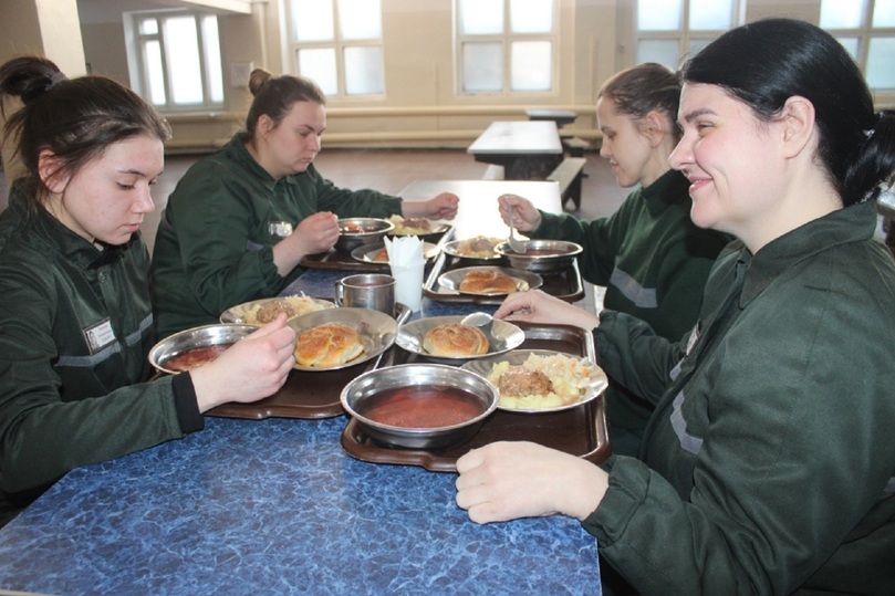 В женской колонии ИК-6 в Нижнем Тагиле праздничный обед включал борщ, котлету с картофельным пюрем, салат из квашеной капусты и плюшку с киселём.