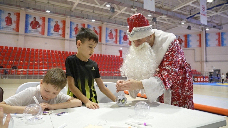 Юные спортсмены украсили новогодние шары логотипами проекта «Выбор сильных», проекта «Самбо в школу!», Всероссийской и региональной Федерации самбо, спортивной школы Единоборств, медалями и кубками.