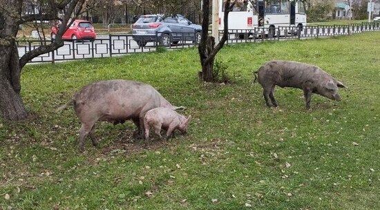 В Ревде свиньи опять пришли почти в центр города. Целое семейство в составе хряка, свиноматки и двух поросят заметили на улице Павла Зыкина.