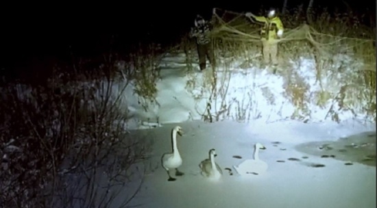 По словам инспектора департамента по охране животного мира Свердловской области Александра Ласкина, лебедей спасли только сейчас, потому что наступили холода. Специалисты надеялись, что птицы улетят.
